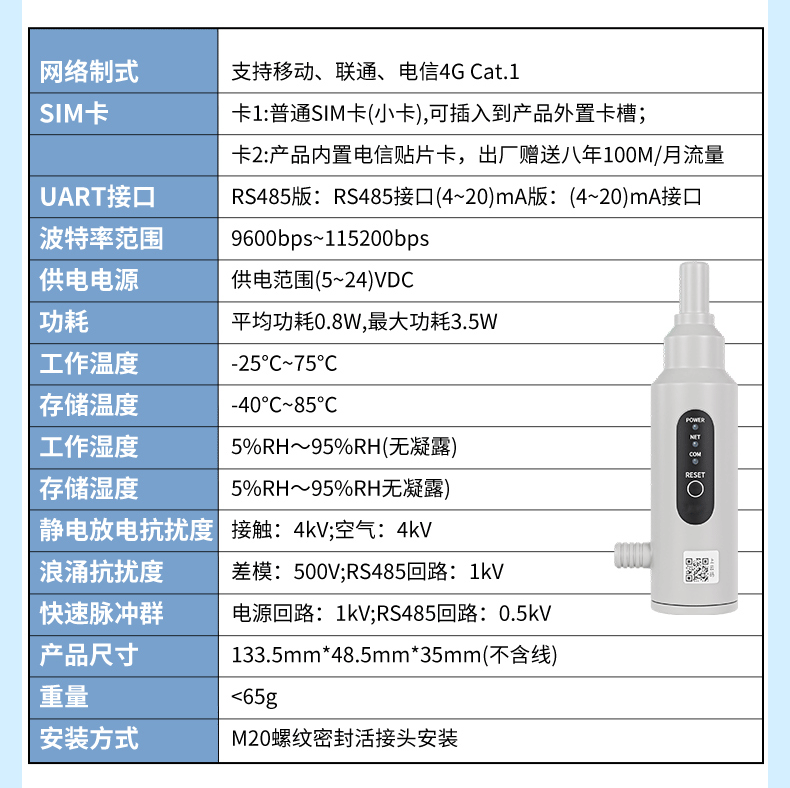 網絡 支持移動、聯通、電信 4G Cat.1