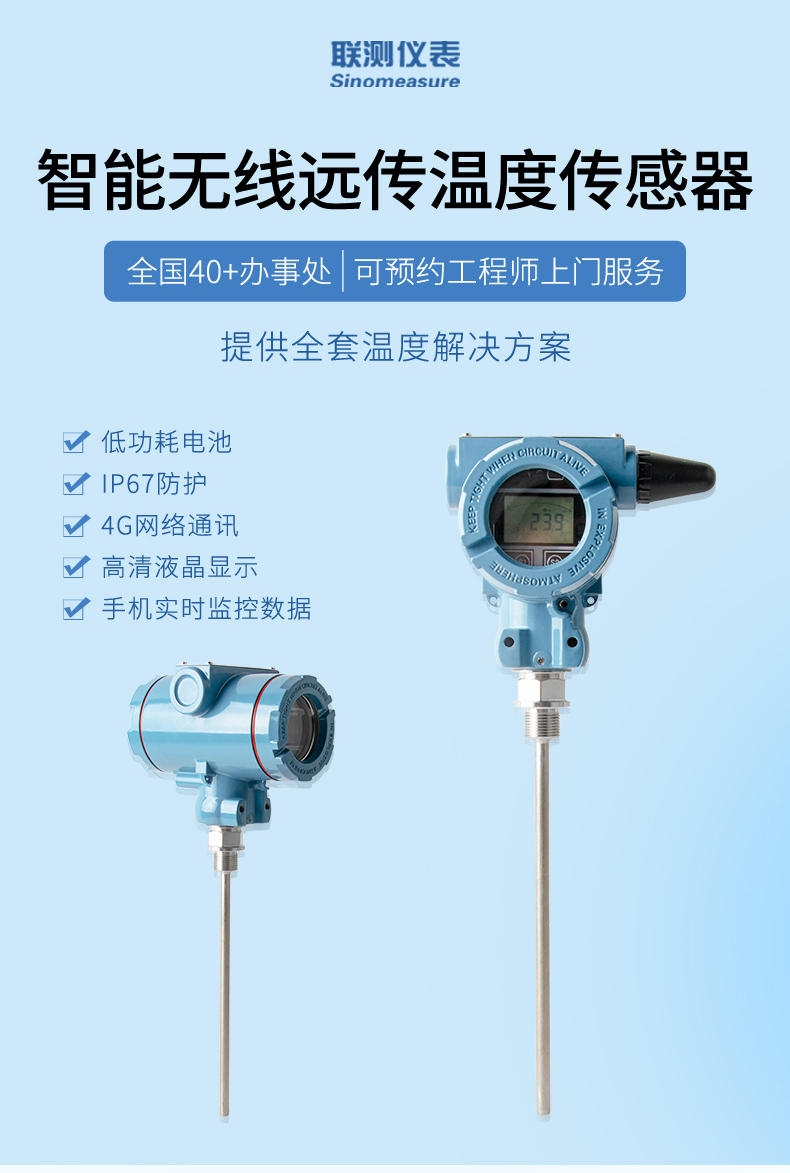 產(chǎn)品描述:無線溫度變送器是基于 4G 無線通訊網(wǎng)絡(luò)使溫度的測量、變送、上報為一體的低功耗智能儀表。產(chǎn)品采用 Pt100 溫度傳感器作為敏感元件,高精度信號調(diào)理電路,低功耗電池電源管理,豐富的 LCD 顯示界面于一體,周期性上報溫度測量值、電池電量、信號質(zhì)量等數(shù)據(jù),并且能夠在溫度超出設(shè)置范圍時及時報警,提前預(yù)警故障隱患。