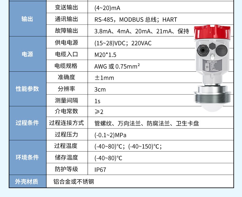 產(chǎn)品名稱:聯(lián)測_WSR200雷達物位計_藍牙輸出_