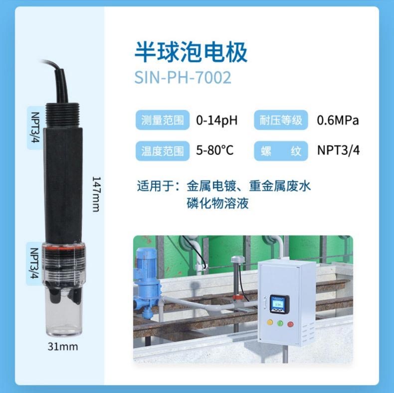 產(chǎn)品名稱:聯(lián)測(cè)_SIN-pH-7002半球泡電極_電鍍廢水專用款