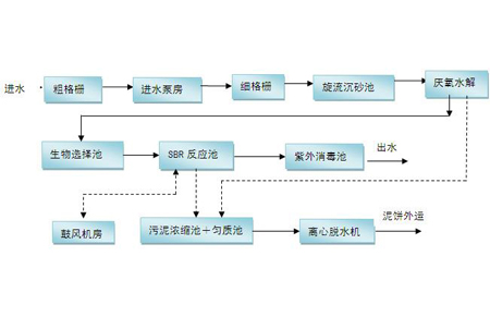 9、工藝流程簡單、造價低。主題設備只有一個序批式間歇反應器,無二沉池、污泥回流系統,調節池、初沉池也可省略,布置緊湊、占地面積省。