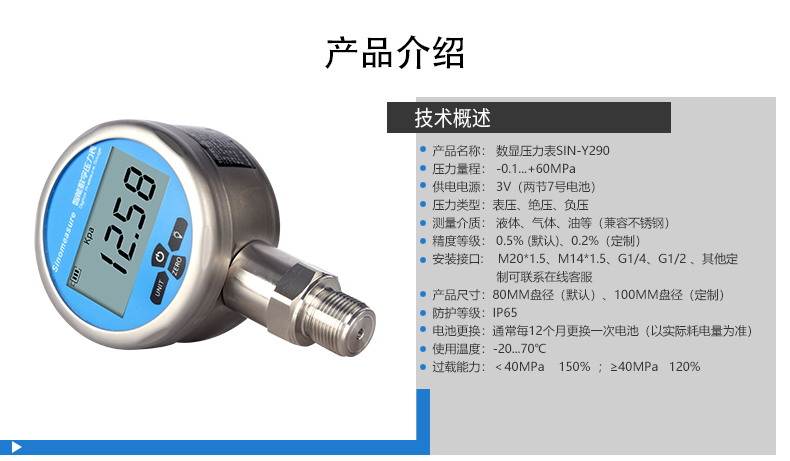 產品名稱:聯測_SIN-Y290高精度智能數顯壓力表