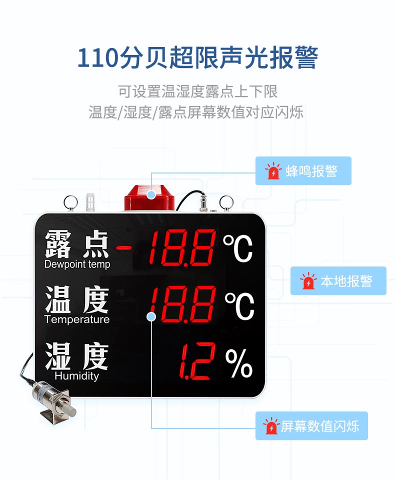 產品名稱:聯測_工業級高精度露點儀_高清大屏、聲光報警、多種規格可選_
