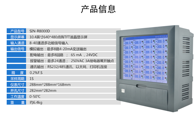 產(chǎn)品名稱:聯(lián)測_SIN-R8000D_1-40路可選_10.4英寸彩屏_記錄溫度/壓力/頻率/開關(guān)量等多種參數(shù)