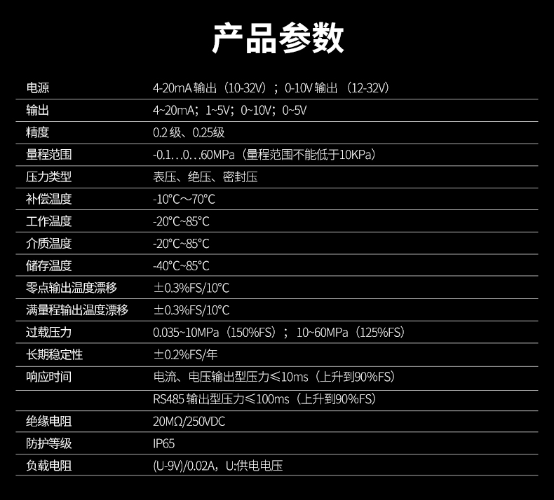 產(chǎn)品描述:擴散硅壓力變送器選用進口高精度、高穩(wěn)定性壓力 敏感芯片。敏感芯片采用先進的微機械刻蝕加工工藝, 通過在硅片上擴散四個高精度電阻,從而形成惠斯通電 橋。由于壓阻效應,四個橋臂電阻的阻值發(fā)生變化,電 橋失衡,敏感元件輸出一個對應壓力變化的電信號。輸 出的電信號通過 24 位 AD 數(shù)字芯片的放大和非線性矯正 的補償,產(chǎn)生與輸入壓力成線性對應關系的電壓、電流 信號。CN6