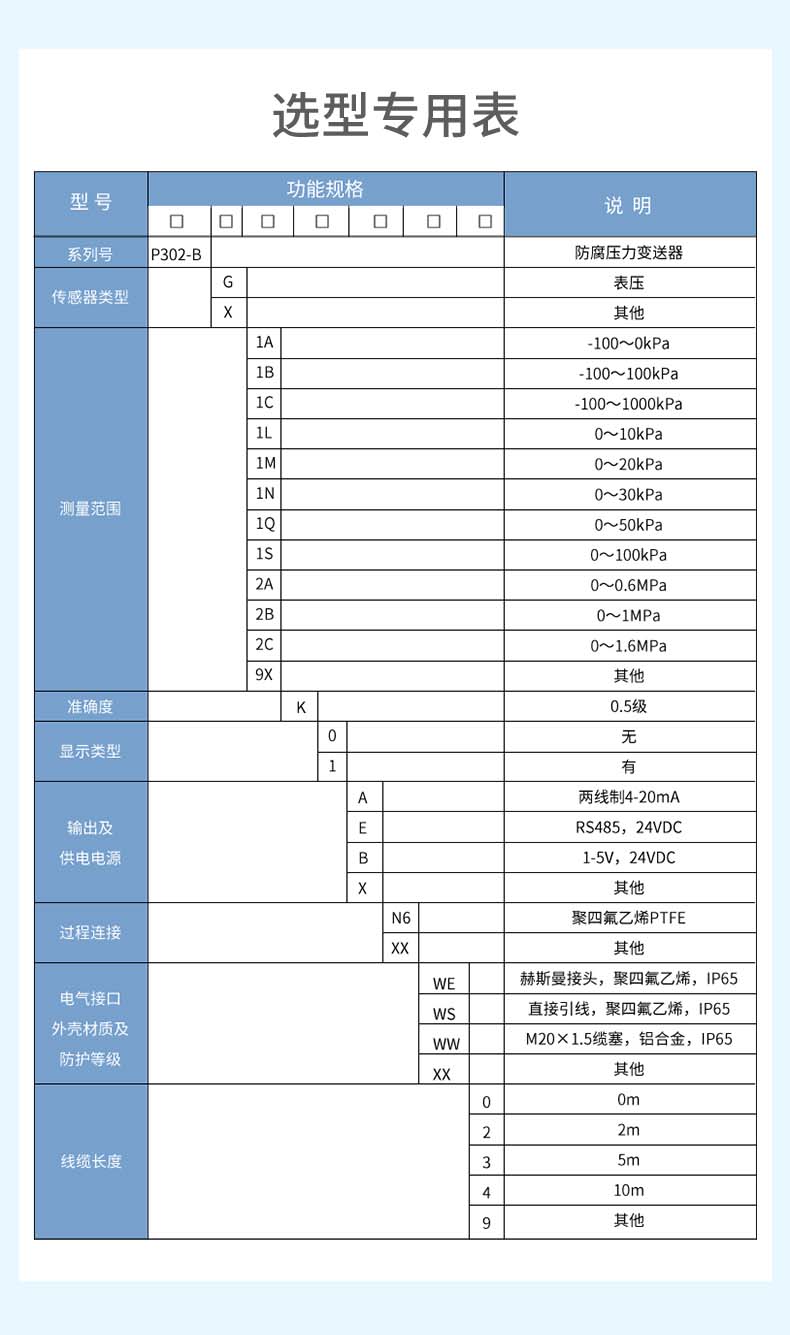 產品名稱:聯測_P302/P302-B -防腐壓力變送器 -陶瓷芯體_