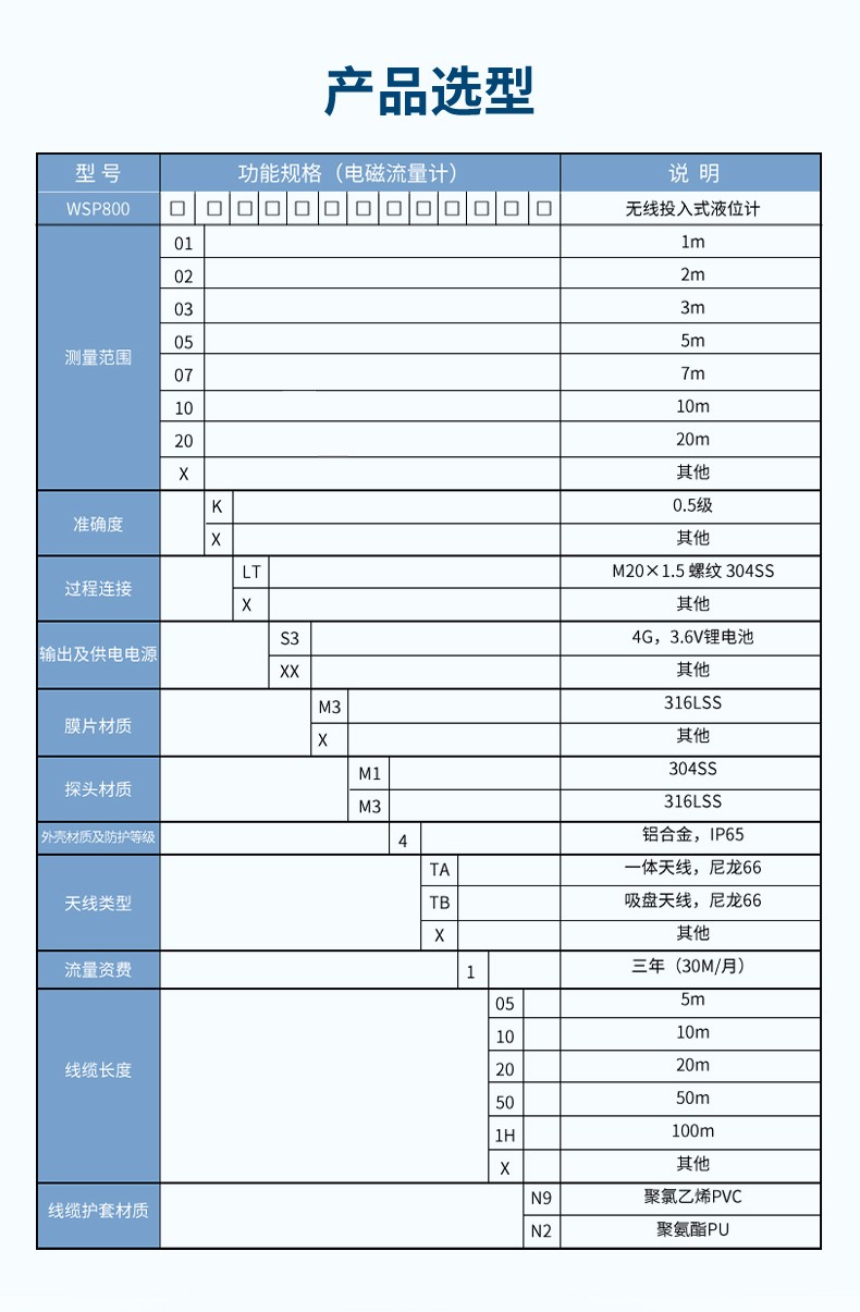 產(chǎn)品名稱:聯(lián)測_WSP800 無線投入式液位計/油田、水利、消防管網(wǎng)/工作溫度范圍(-30~70)℃/
