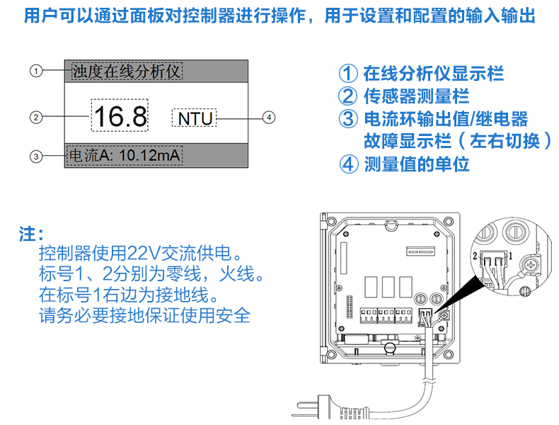 產(chǎn)品描述:濁度在線分析儀是針對飲用水水質(zhì)在線監(jiān)測,量身研發(fā)的具有自主 知識產(chǎn)權(quán)的專利產(chǎn)品,具有超低濁度檢出限、高精度測量、設(shè)備長時(shí)間 免維護(hù)、省水工作和數(shù)字化輸出的特點(diǎn),支持云平臺和手機(jī)移動(dòng)端數(shù)據(jù) 遠(yuǎn)程監(jiān)控,以及 RS485-modbus 通訊,可廣泛應(yīng)用于自來水出廠水、二次 供水、管網(wǎng)末梢水、直飲水、膜過濾水、游泳池、地表水等濁度在線監(jiān) 測。CN3
