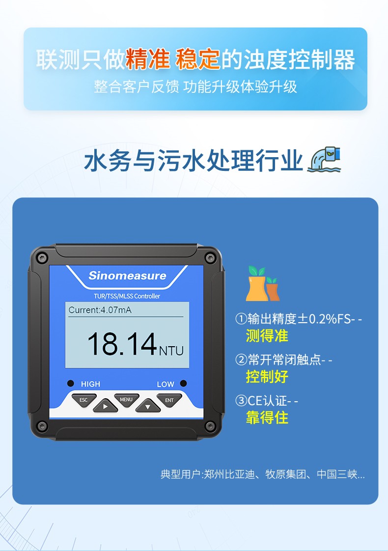 產品描述:本產品為水質通用型控制器,適用于與本公司多種水質系列數字傳 感器配套使用,用于監測包括 pH、ORP、電導率、溶解氧、濁度、污泥 濃度等水質參數,監測的參數通過 RS485 或電流變送輸出到監控室進行 記錄保存